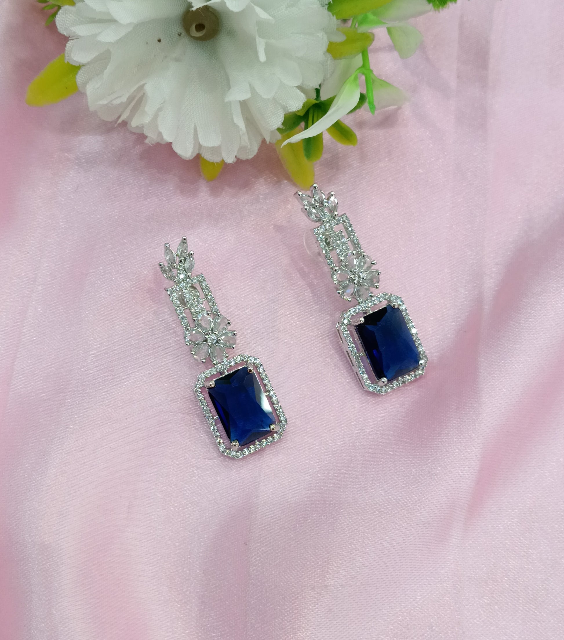 Silver Blue American Diamond CZ Earining Prince Online