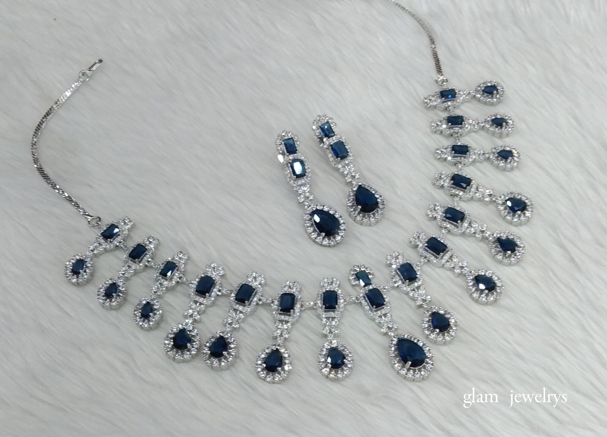 Silver Blue Diamond AD Jasmeet Necklace Set /Indian Necklace Set