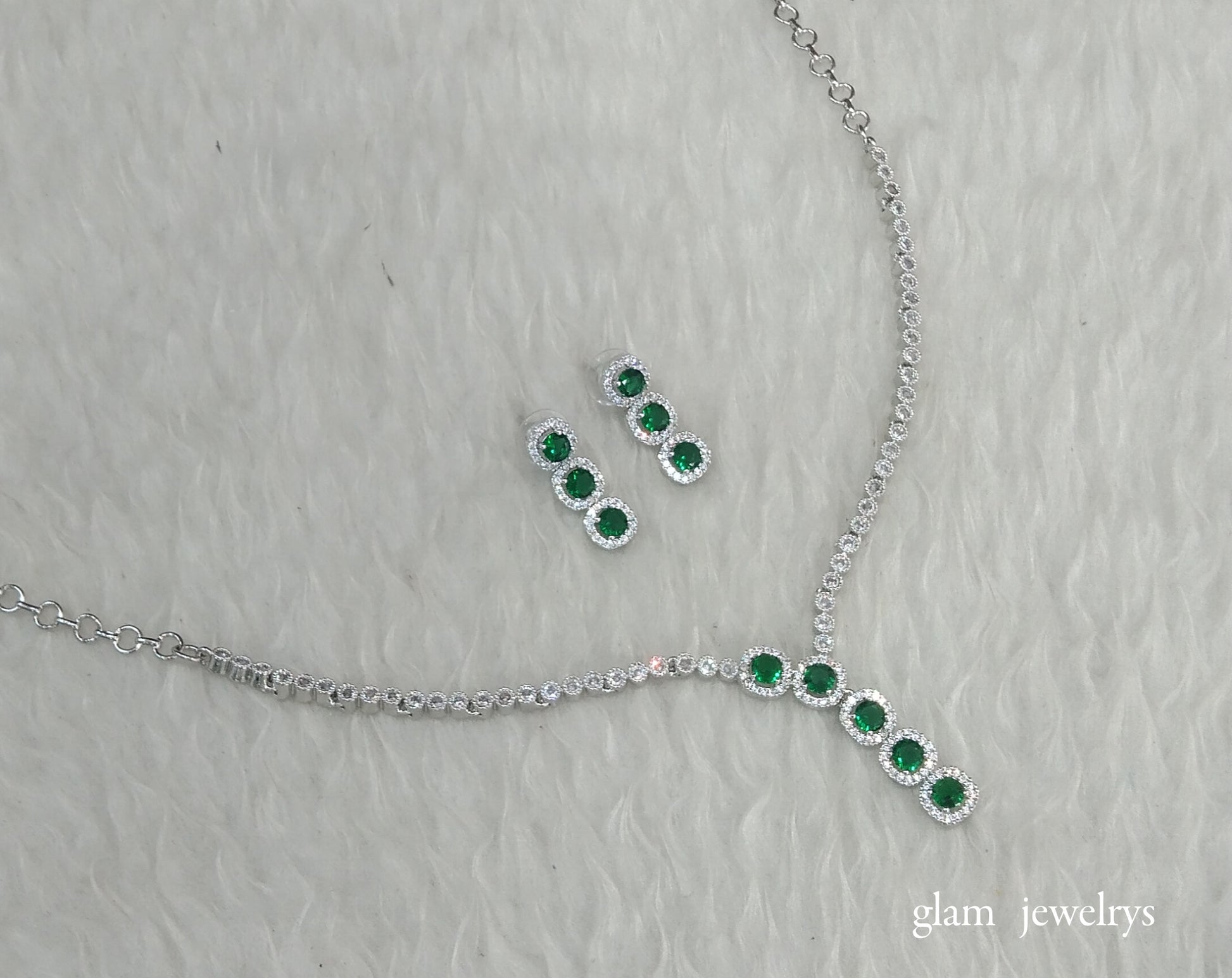 Silver Green American Diamond AD Maya Necklace Set /Indian Necklace Set