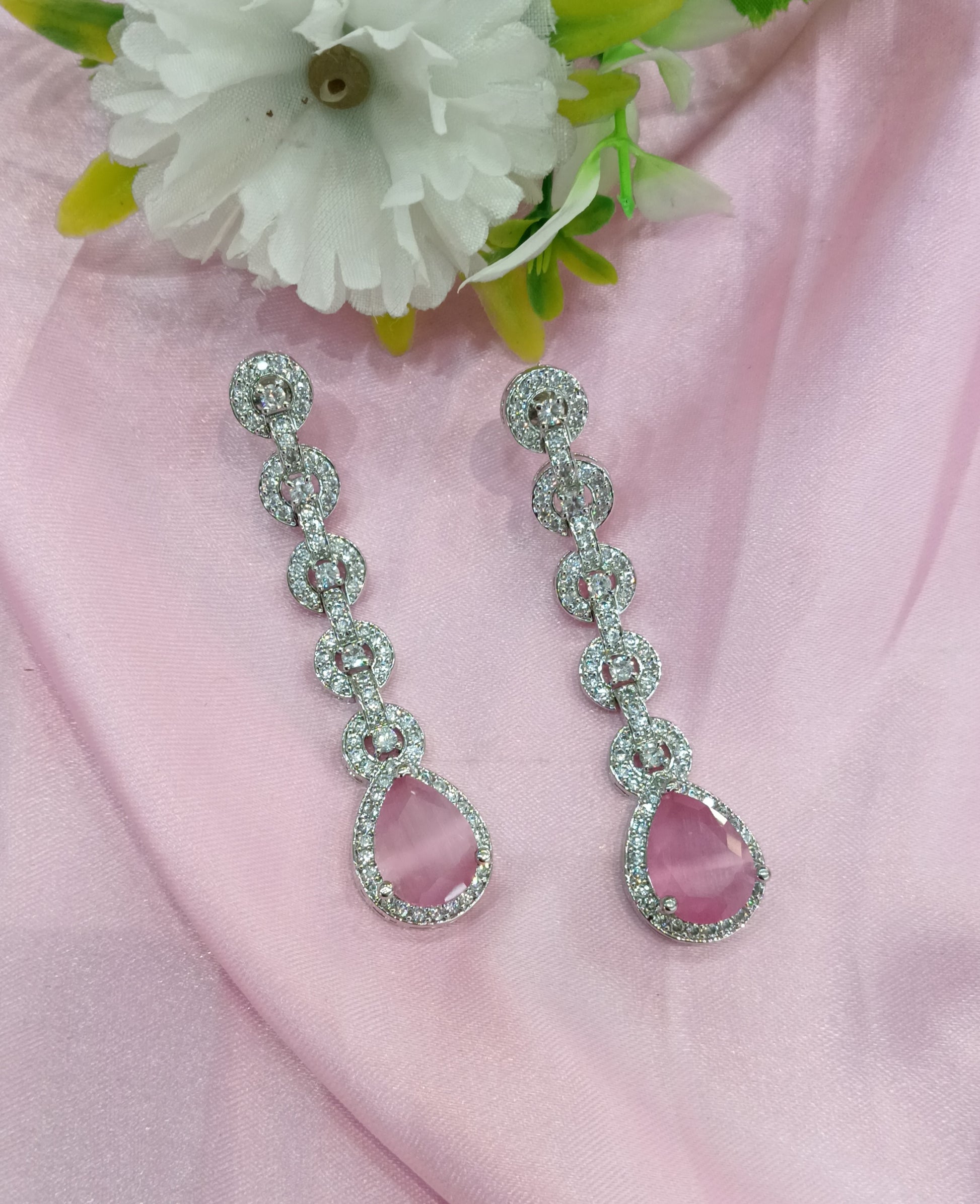 Silver Pink American Diamond CZ Earining Prince Online