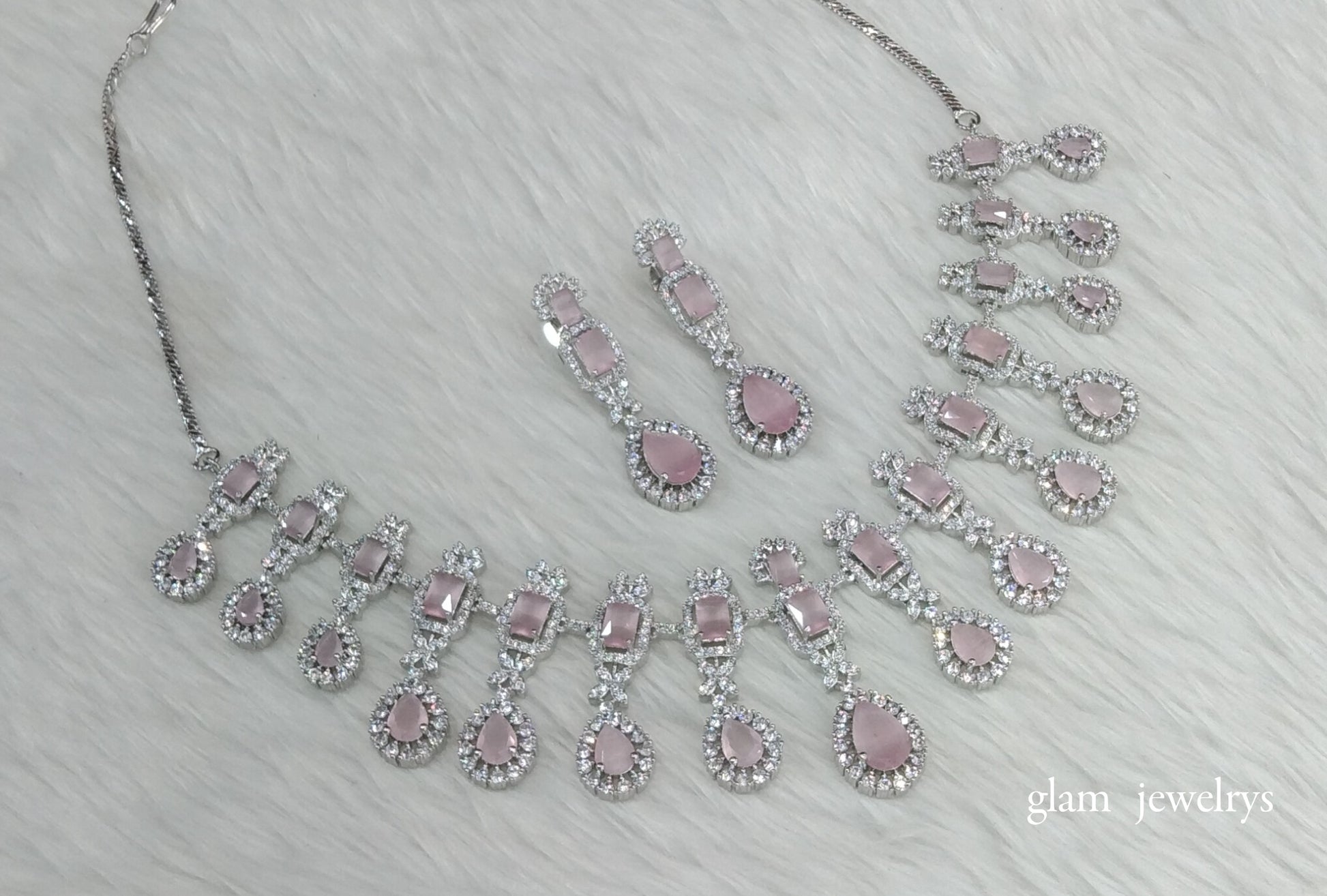Silver Pink Diamond AD Jasmeet Necklace Set /Indian Necklace Set