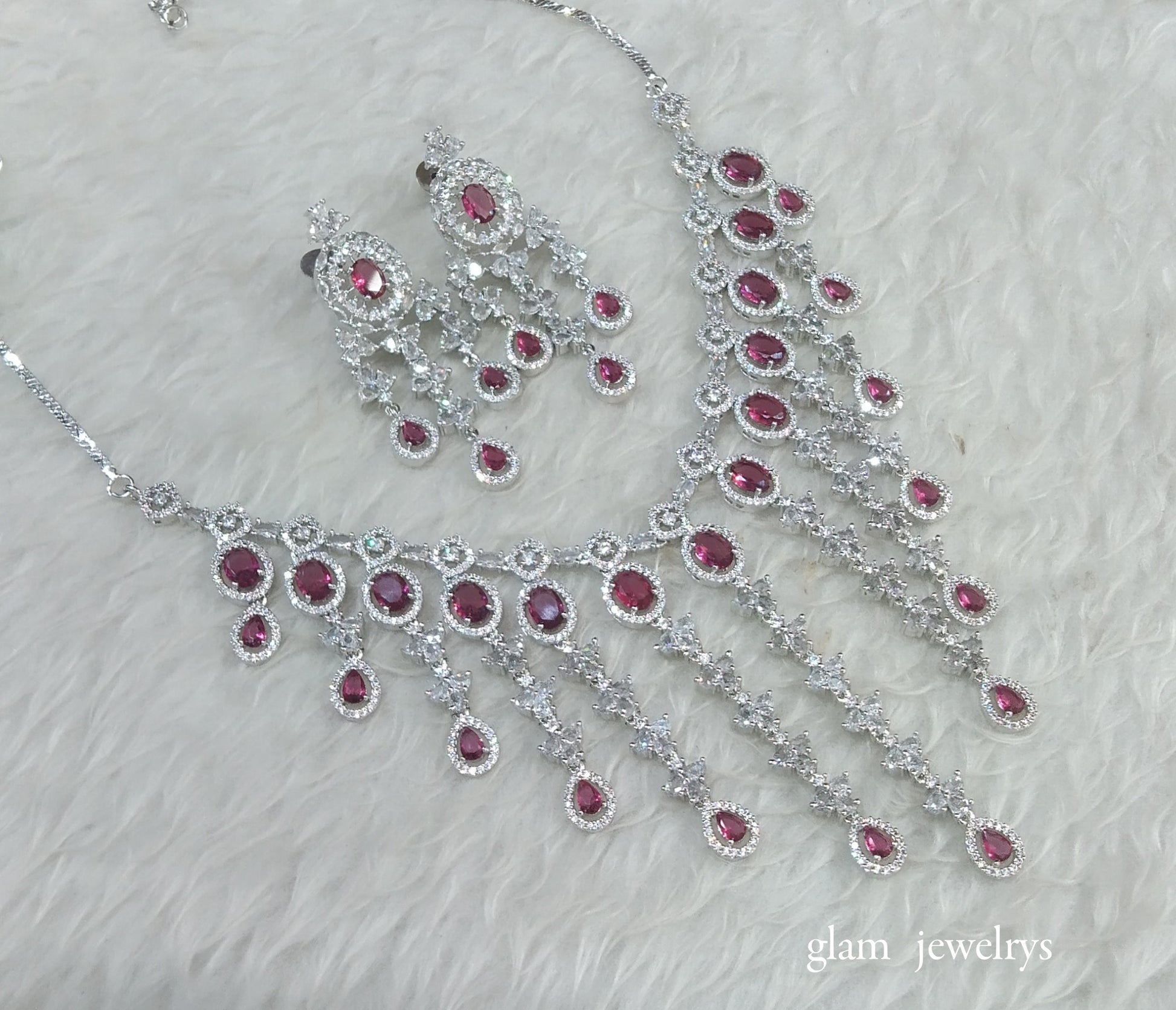 Silver Ruby American Diamond AD Luna Necklace Set /Indian Necklace Set
