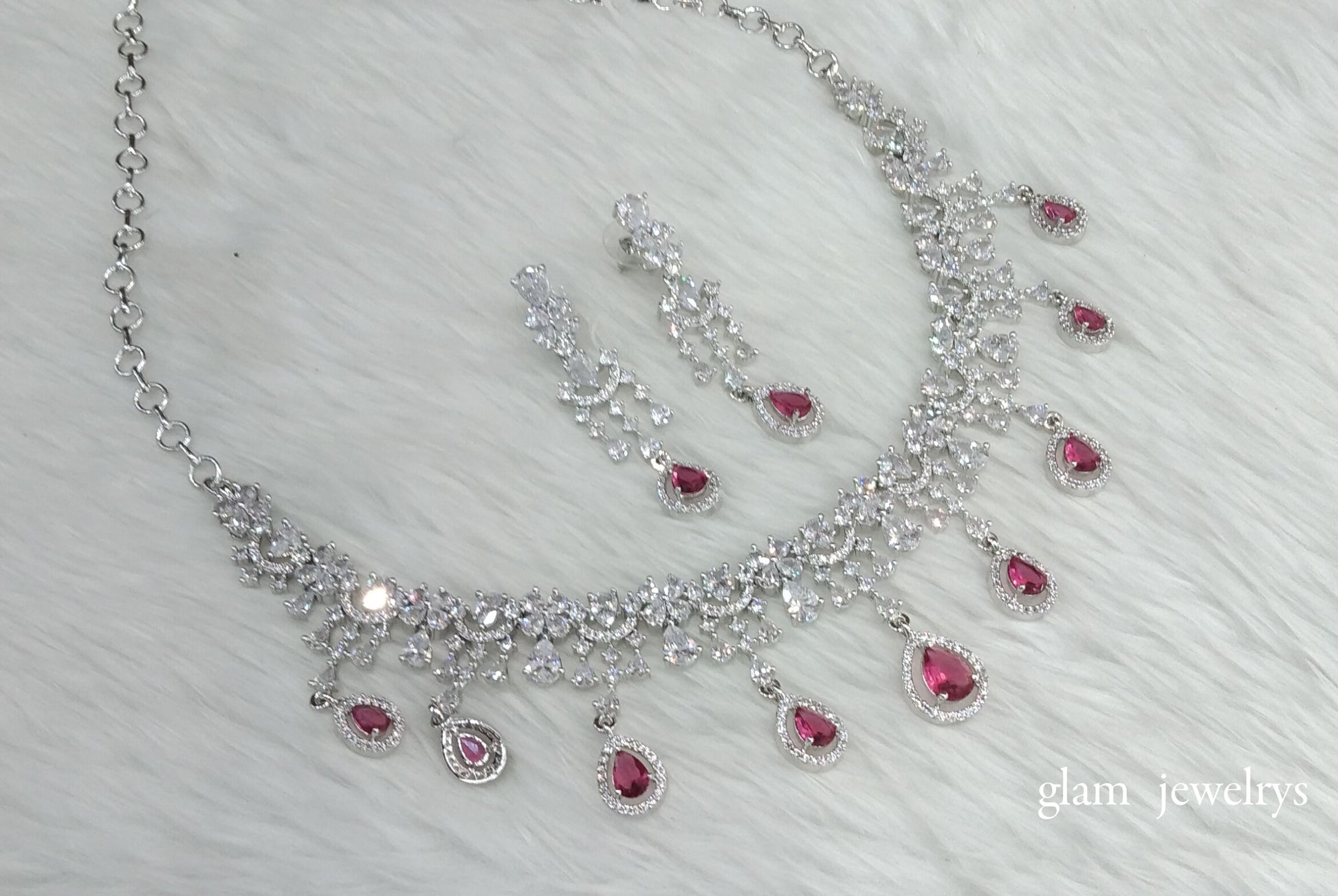 Silver Ruby Diamond AD Gaggi Necklace Set /Indian Necklace Set