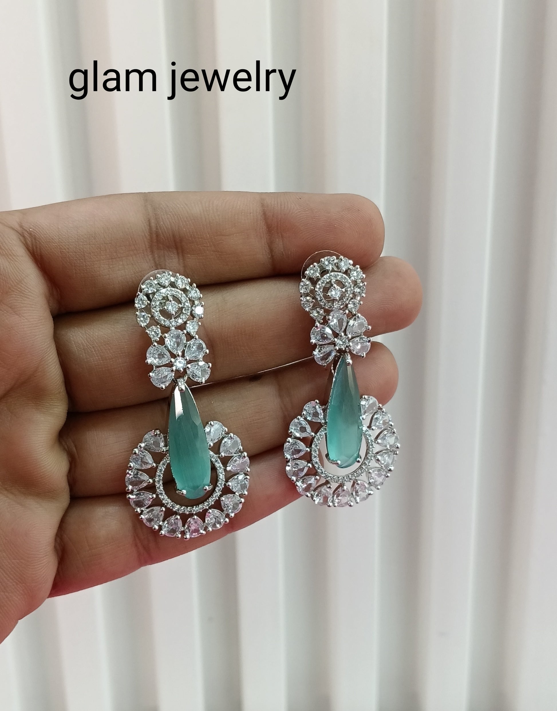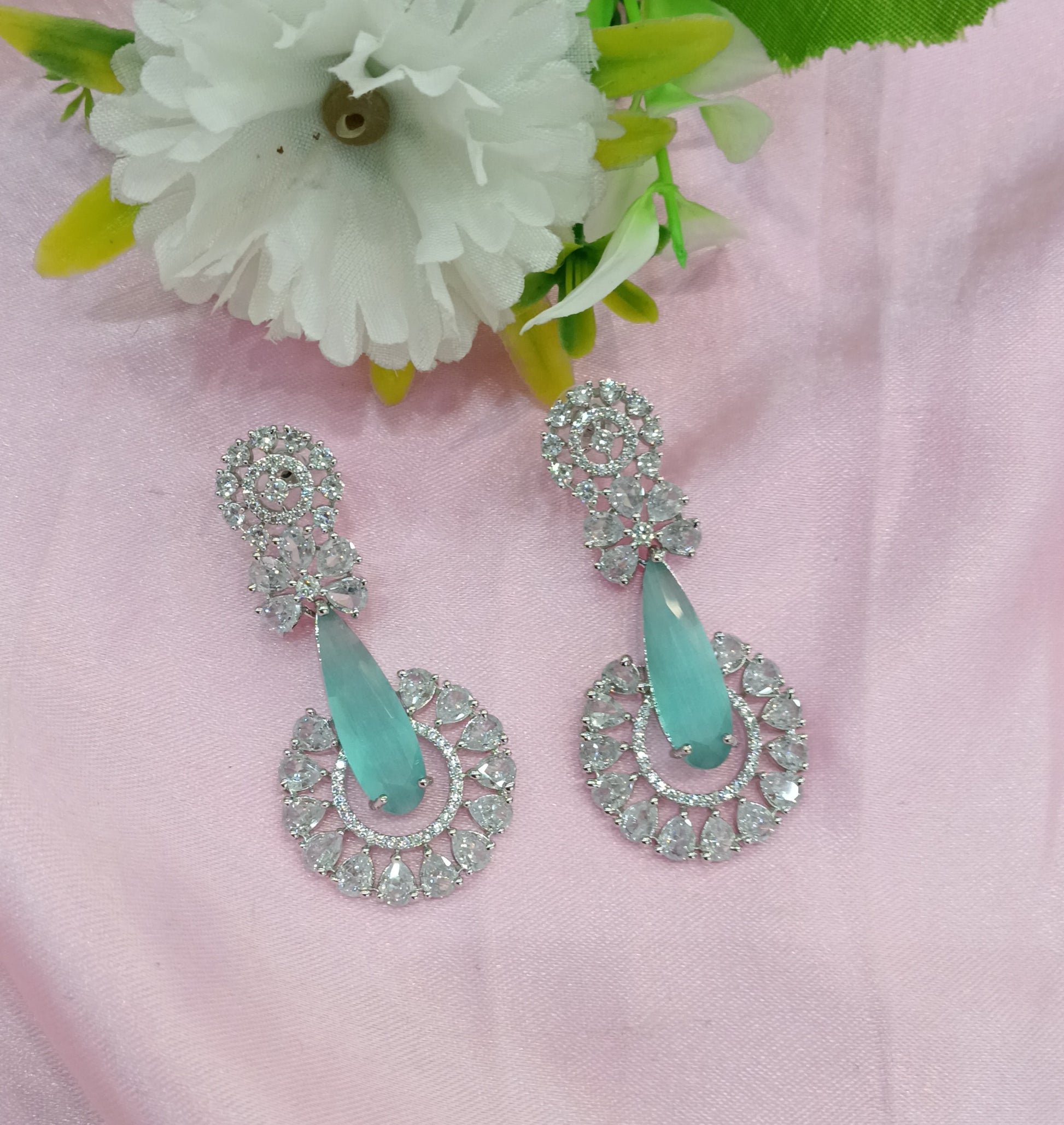 Silver Sea Green American Diamond CZ Earining Prince Online