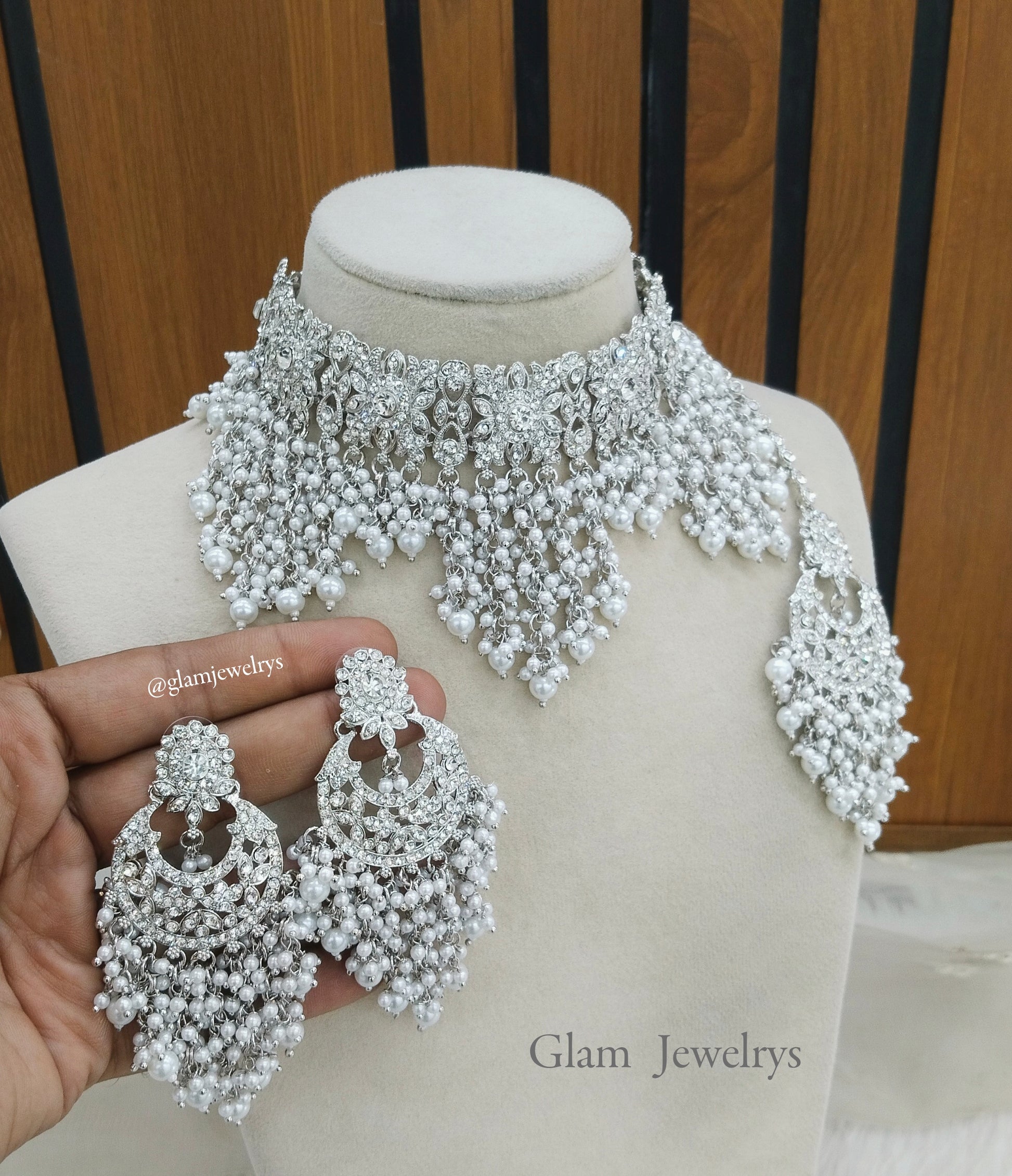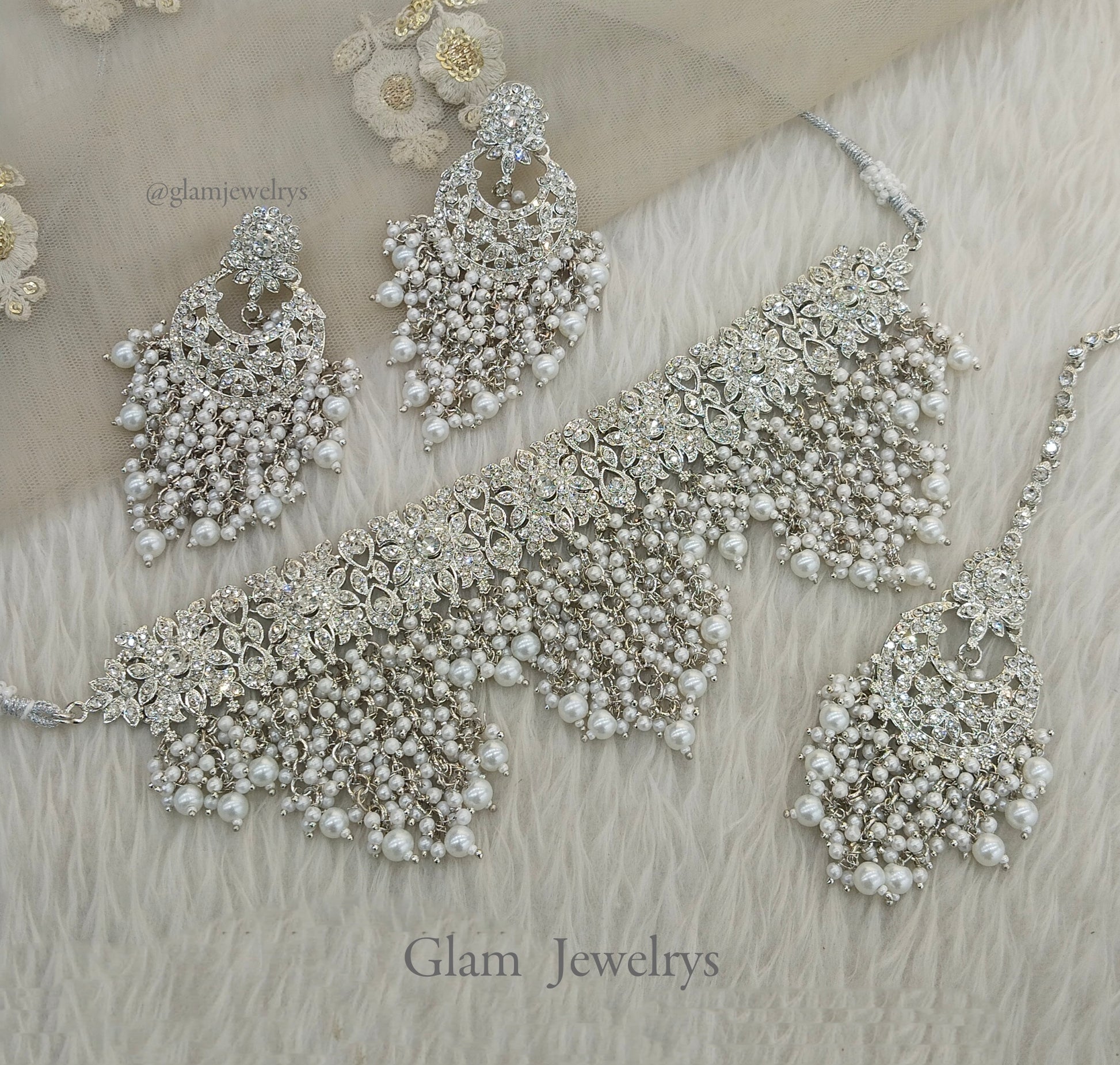 Silver White Choker Set Indian Choker Siraj Jewellery