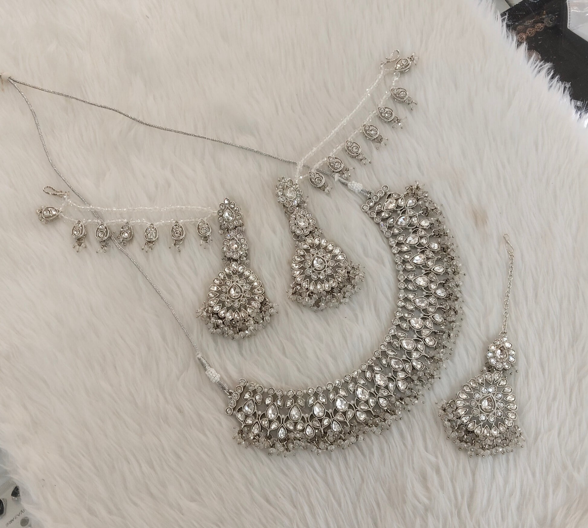Silver White Necklace Indian Jewellery Bruit Set