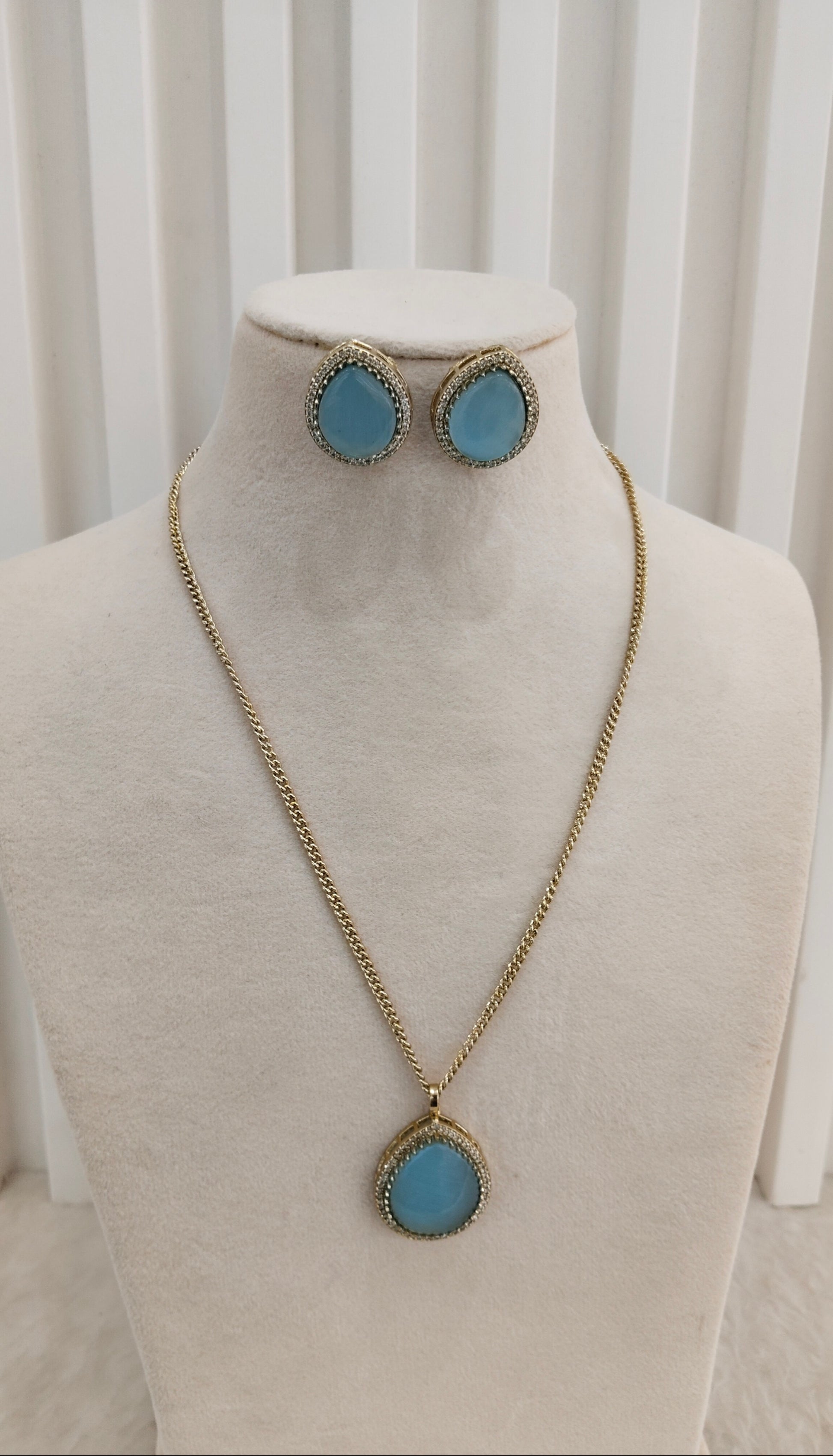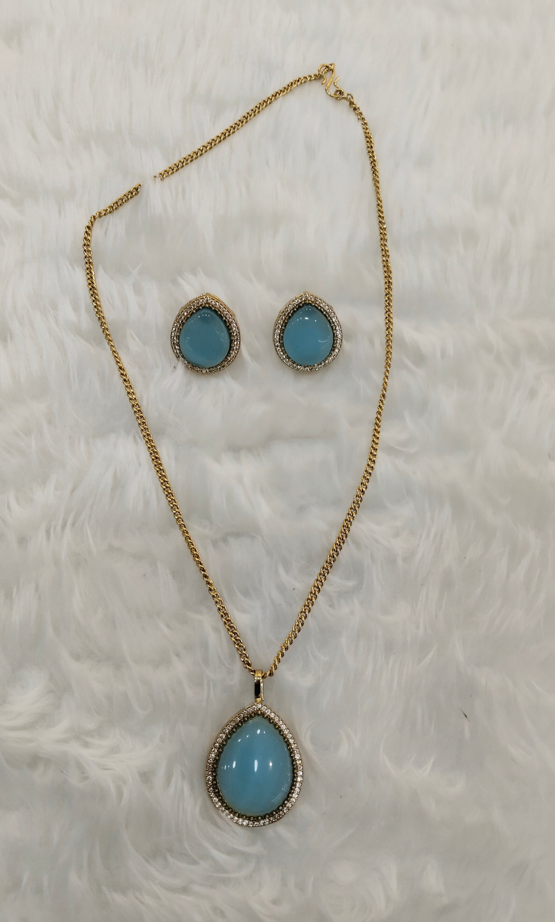 Sky Blue Gold Moissanite Kundan Necklace Indian Jewellery Avenger Chain Set