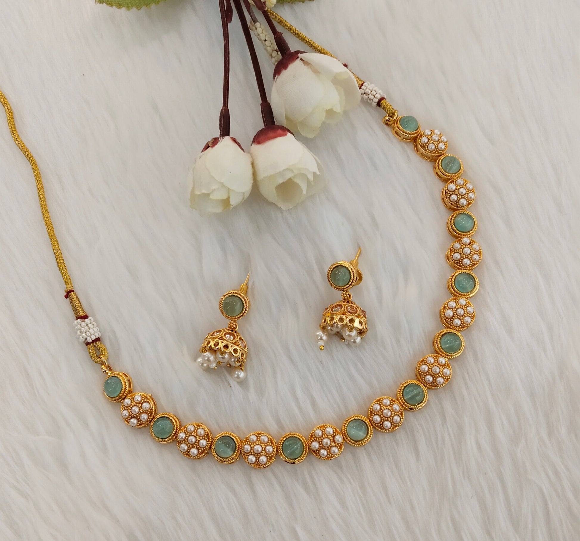 Pastel Green Bridal Necklace Jewellery Kadir Set