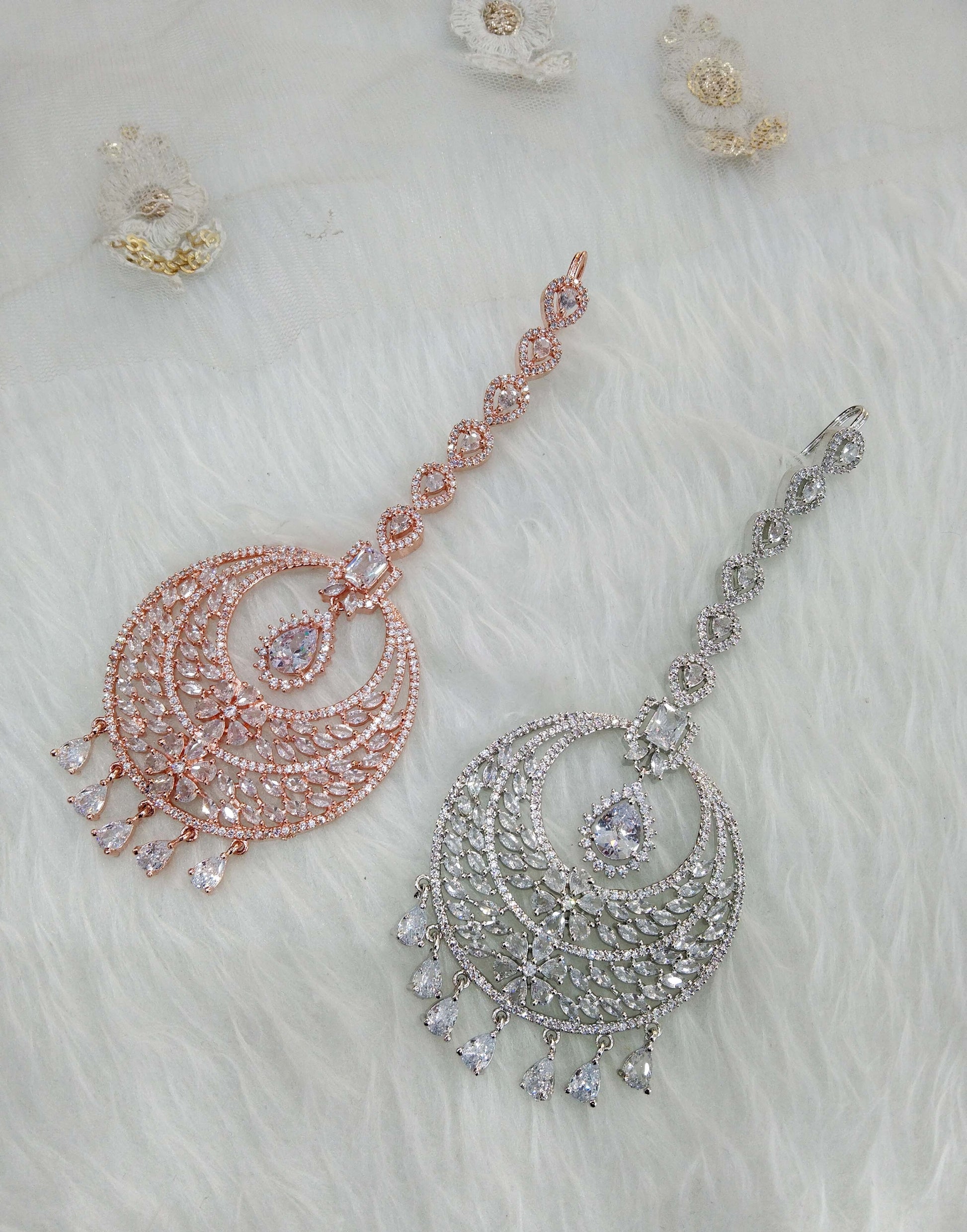 Tikka Tika Jewellery Indian Headpiece Jewellery/Silver, rose gold CZ HeadPiece tikka Hair/American diamond Maang Tikka Jewellery