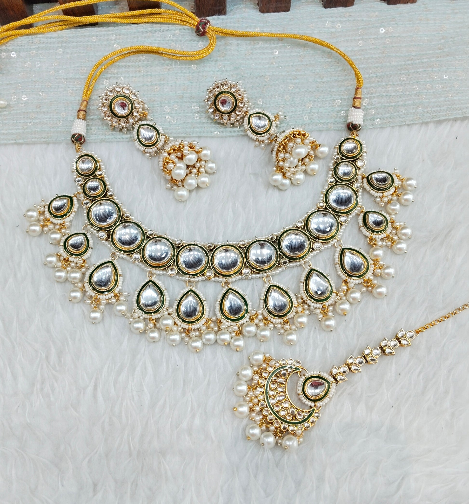 *Kundan necklace set with earrings and tikka.