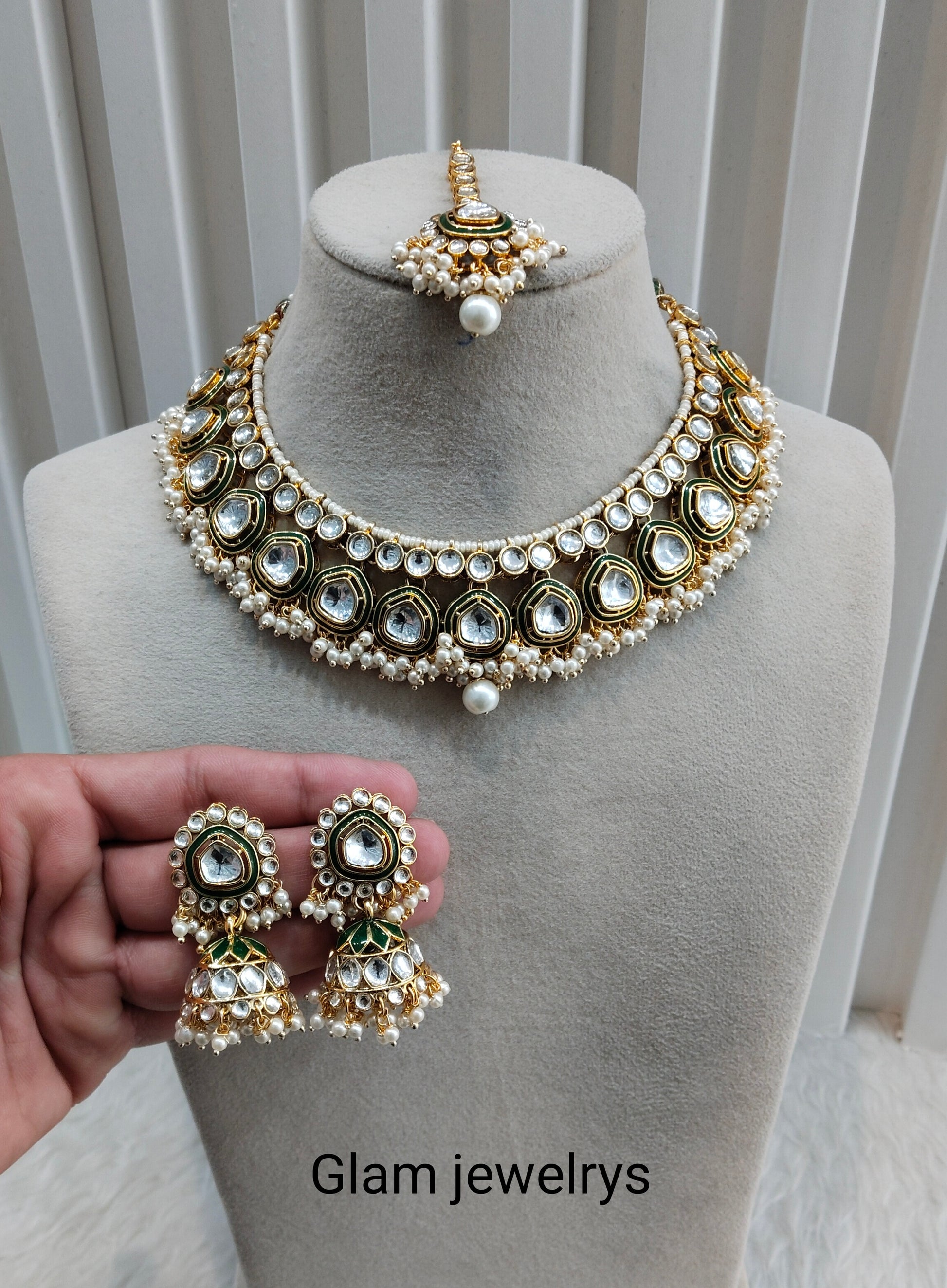 Pastel Green Bridal Necklace Jewellery Kadir Set