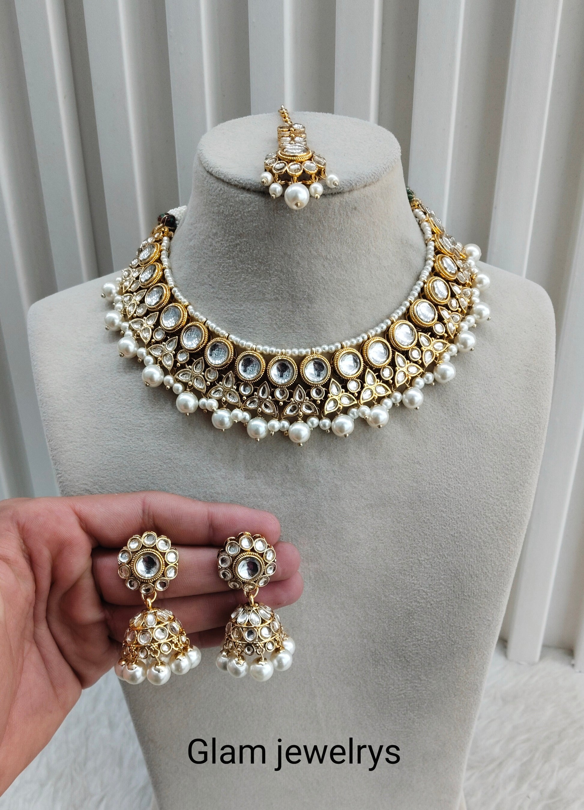*Kundan necklace set with earrings and tikka.