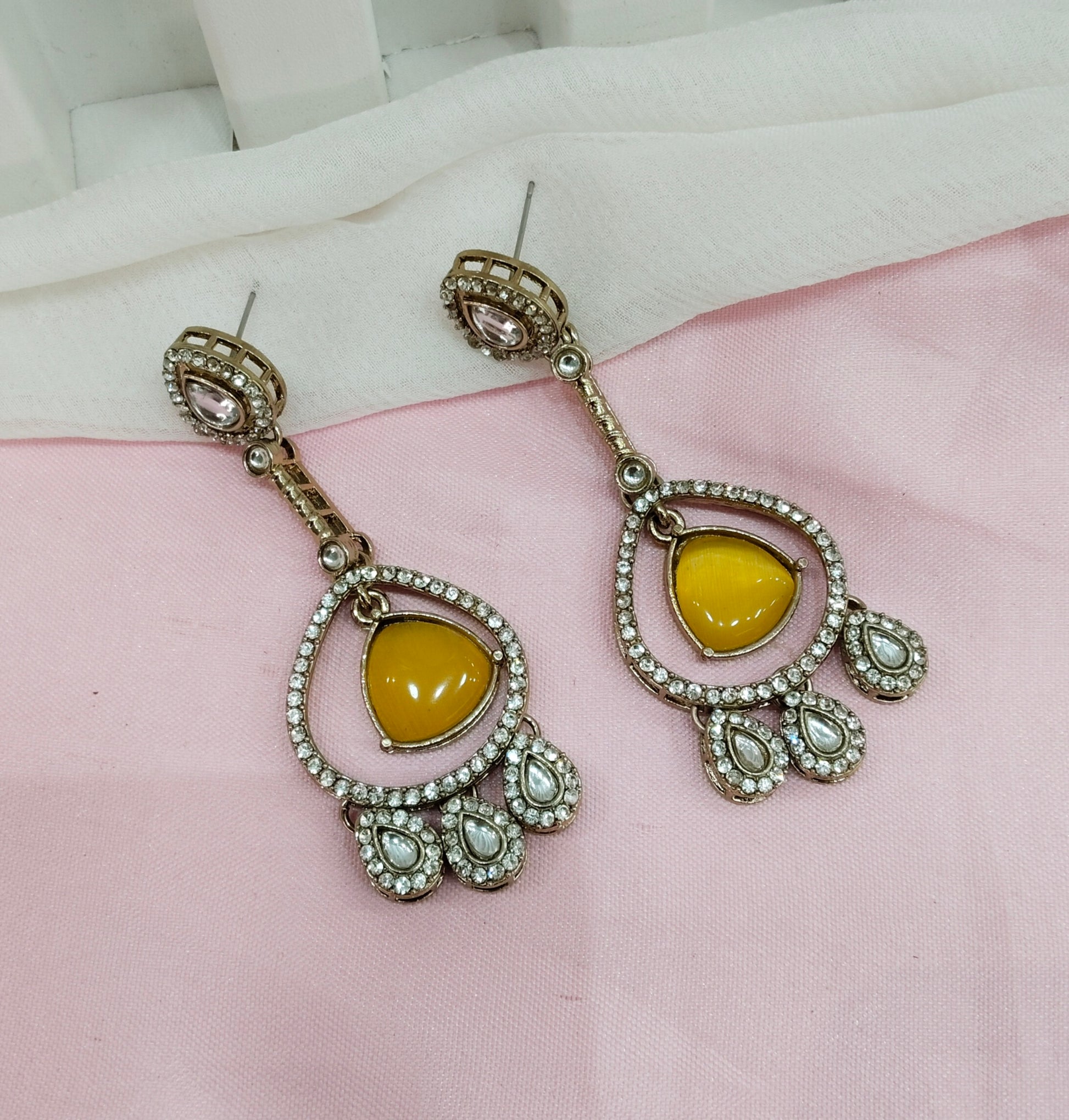 Yellow Antique Gold Omna Indian Earrings Set